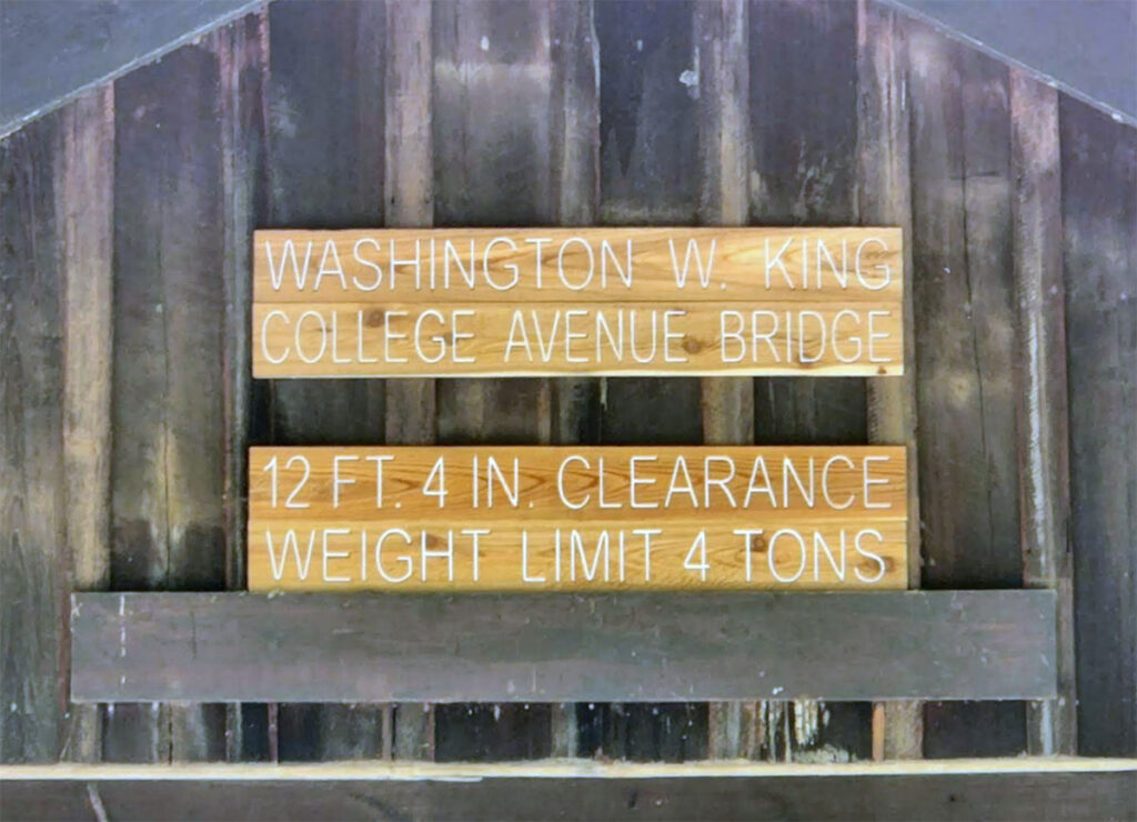 Captain Woodcarver was recently commissioned to build a custom wooden sign for the Washington W. King, College Avenue bridge. This century-old covered bridge is located at Stone Mountain Park and has been named in honor Washington W. King who built the bridge.
